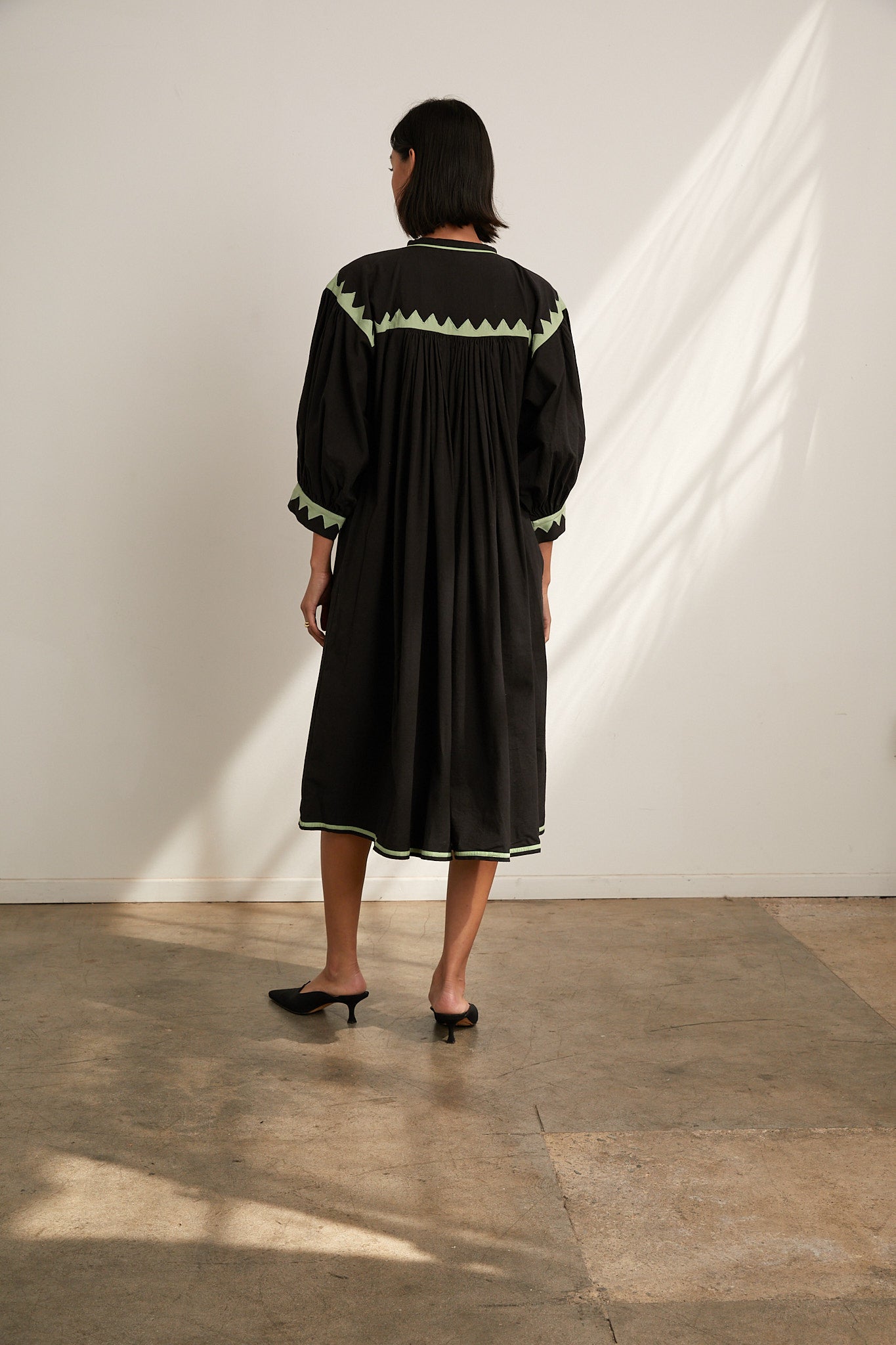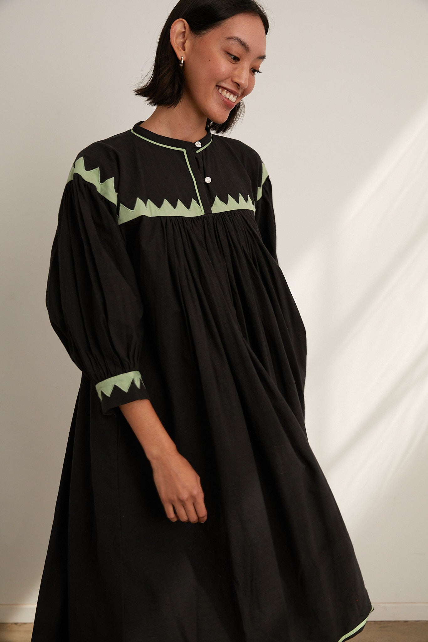 Twirling Dress - Black/Grasshopper Zig Zag Appliqué